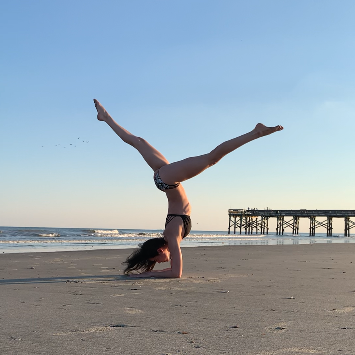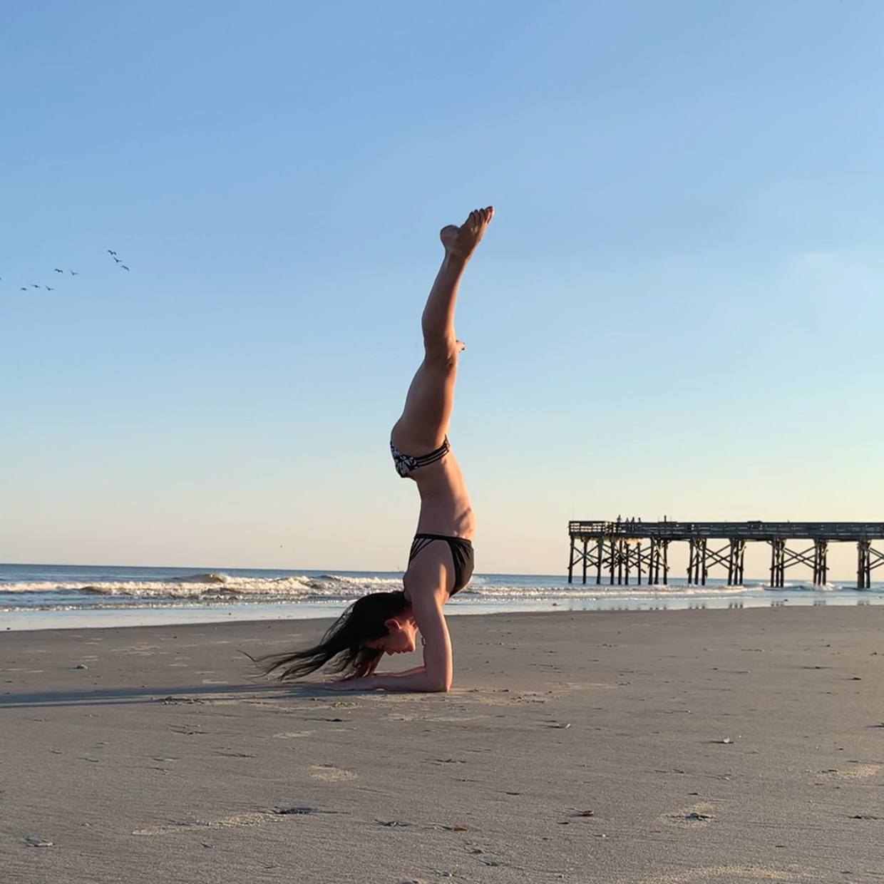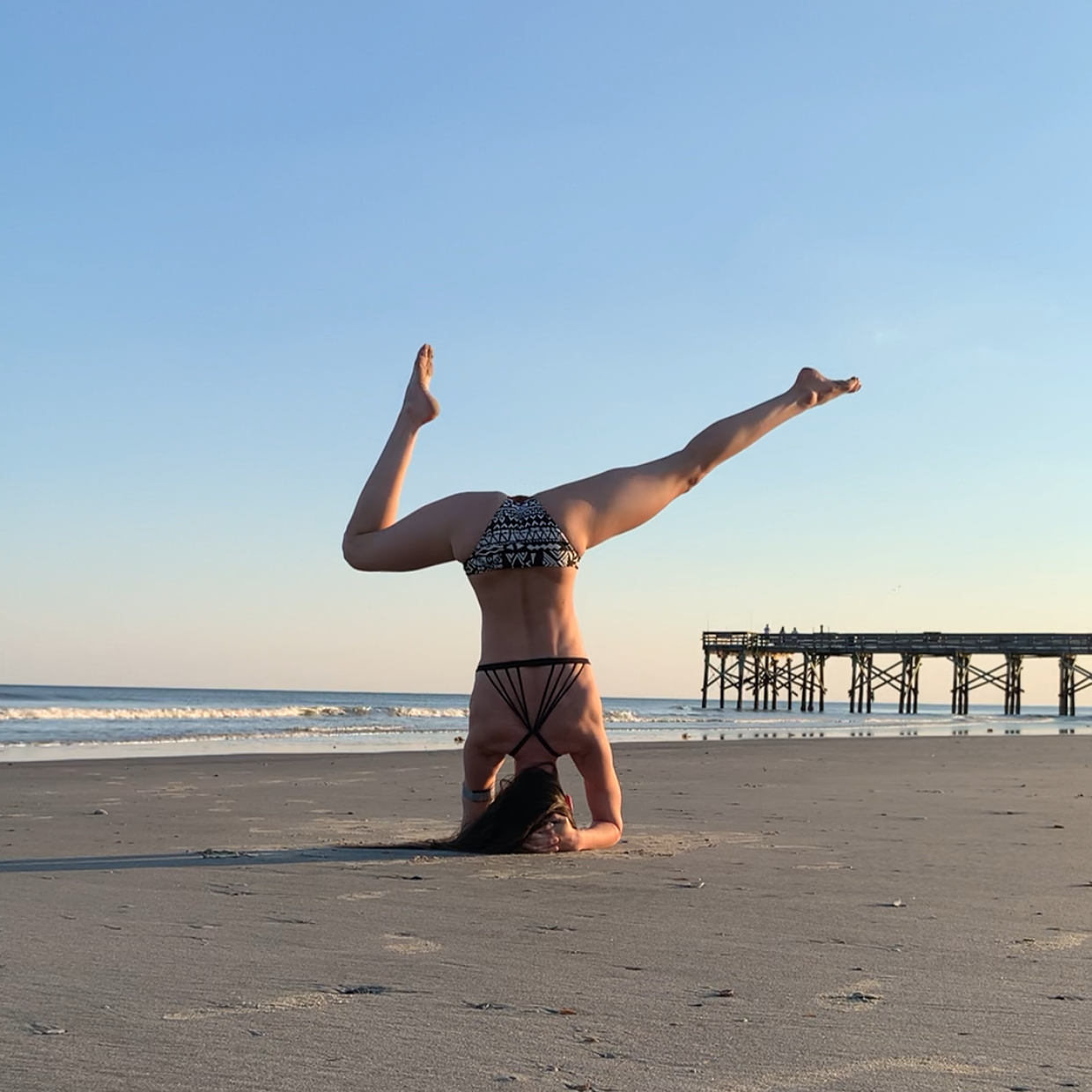 As you might have guessed, I take great joy in getting upside down. So of course I took the opportunity to do so almost immediately in front of the ocean! Taking pictures and video in public is always a little awkward. I’m convinced I’m going to end up on an influencers in the wild post one day for my shenanigans, but so be it. I have fun with it and it is my creative outlet. But it sure felt extra weird being in such a public place after a year of not going out much! And of course, someone walking by in a group yelled out, “Oh! What is she gonna do?” LOL! No idea if my pincha and handstands were exciting for them or not, but again, I had fun!