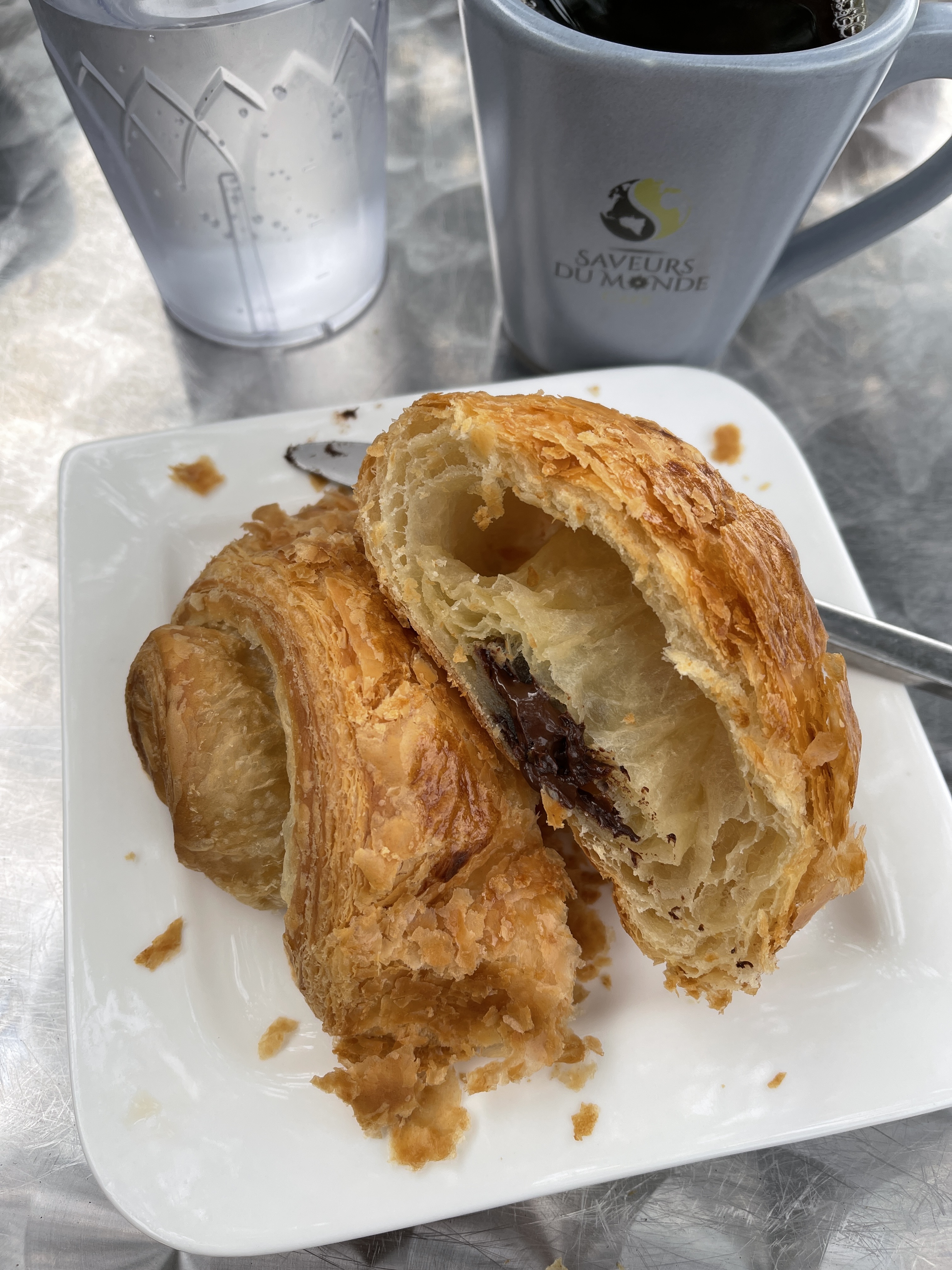 My favorite breakfast spot- Saveurs Du Monde Cafe- just look at that chocolate croissant. 😍