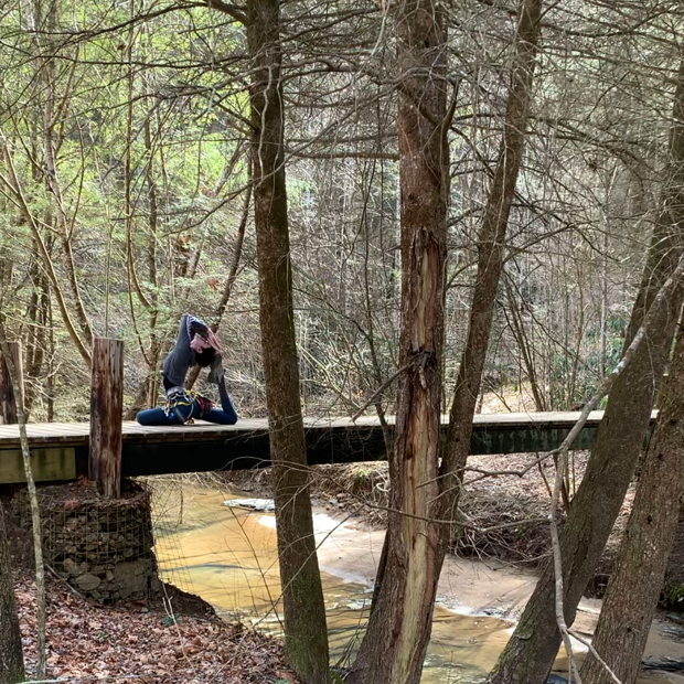 Yoga and climbing are such a perfect combination. Mobility when climbing is a huge advantage! Being able to keep your hips close to the wall and get your foot and leg higher really helps. The first time that I ever touched my foot to my head in flip grip king pigeon was after a day of climbing! I was so excited! Ever since I have had the tradition of taking either a pigeon or dancer picture when I climb and it makes my heart happy to be able to look back on those memories.