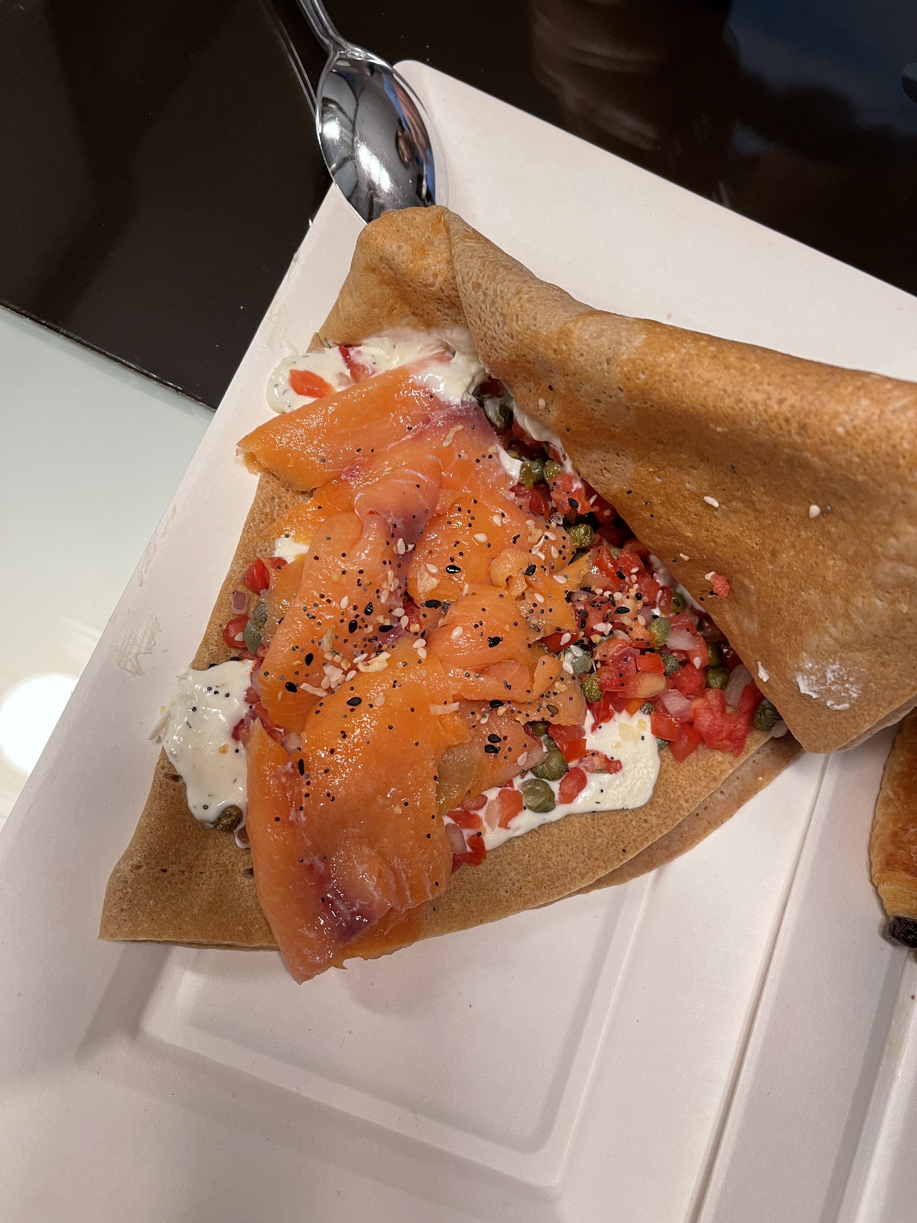 The patisserie at the Aria was amazing. I got a smoked salmon crepe, which had just the right amount and combination of garnish to hit all of the flavor notes. I also had a few pastries, and they were all delicious. Most highly recommended is the nutella filled brioche. It was so light, with just the right amount of flavor in the bread and went so nicely with the nutella filling.